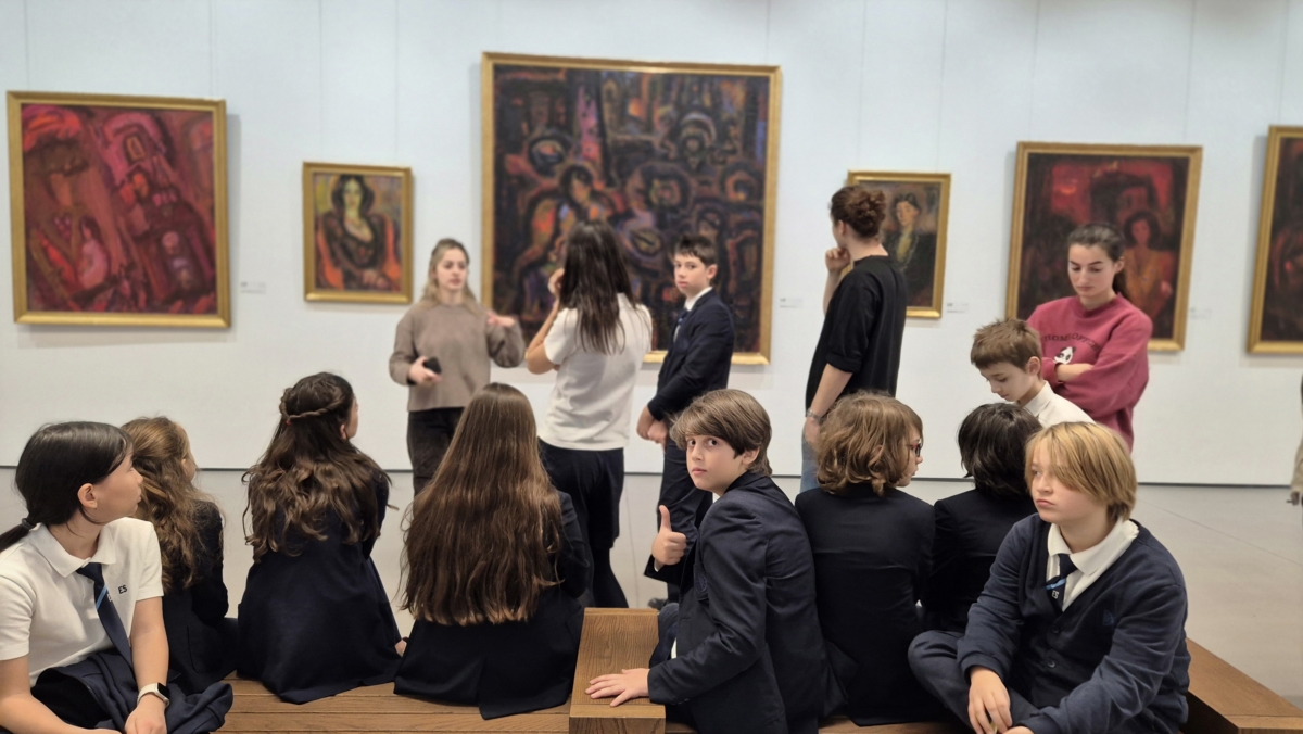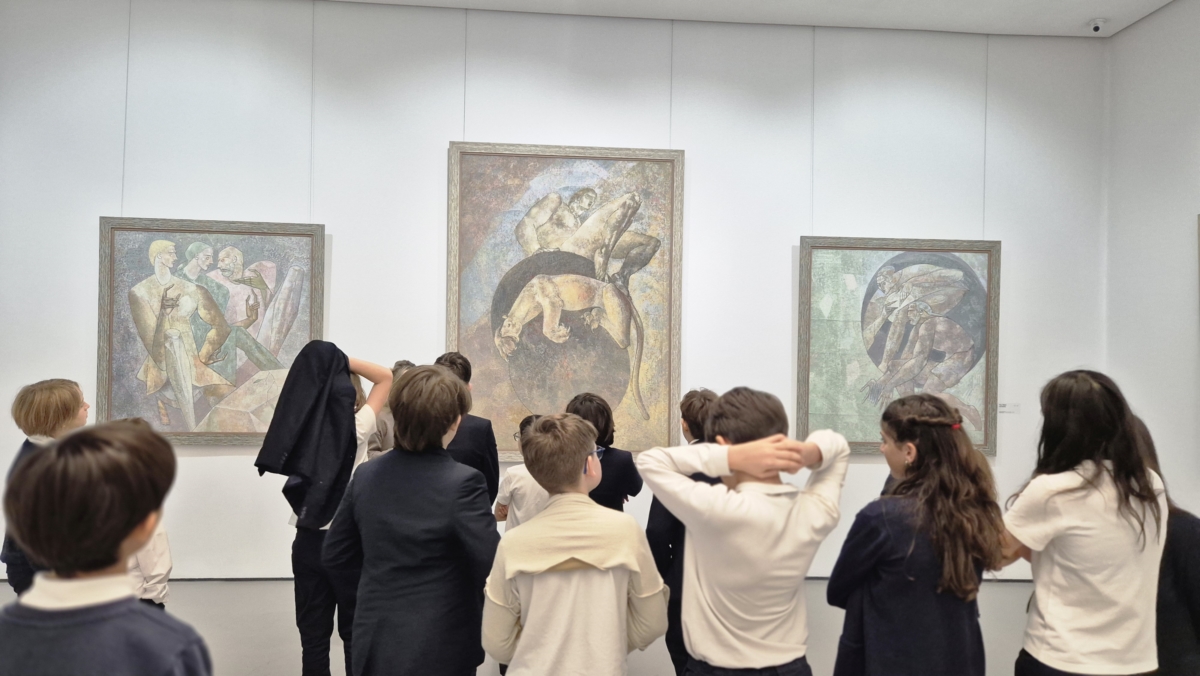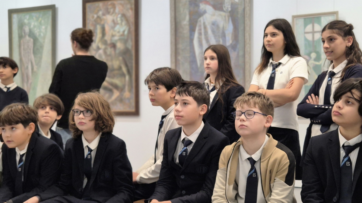 Grade 5C visited the art gallery as part of their formative assessment, where they explored various exhibitions and discussed the artists’ styles and techniques. Students carefully observed the paintings, taking time to notice colors, emotions, and details before choosing the artwork that inspired them the most. After selecting their favorite piece, they wrote a four-stanza poem that expressed their personal interpretation and emotional response to the painting.