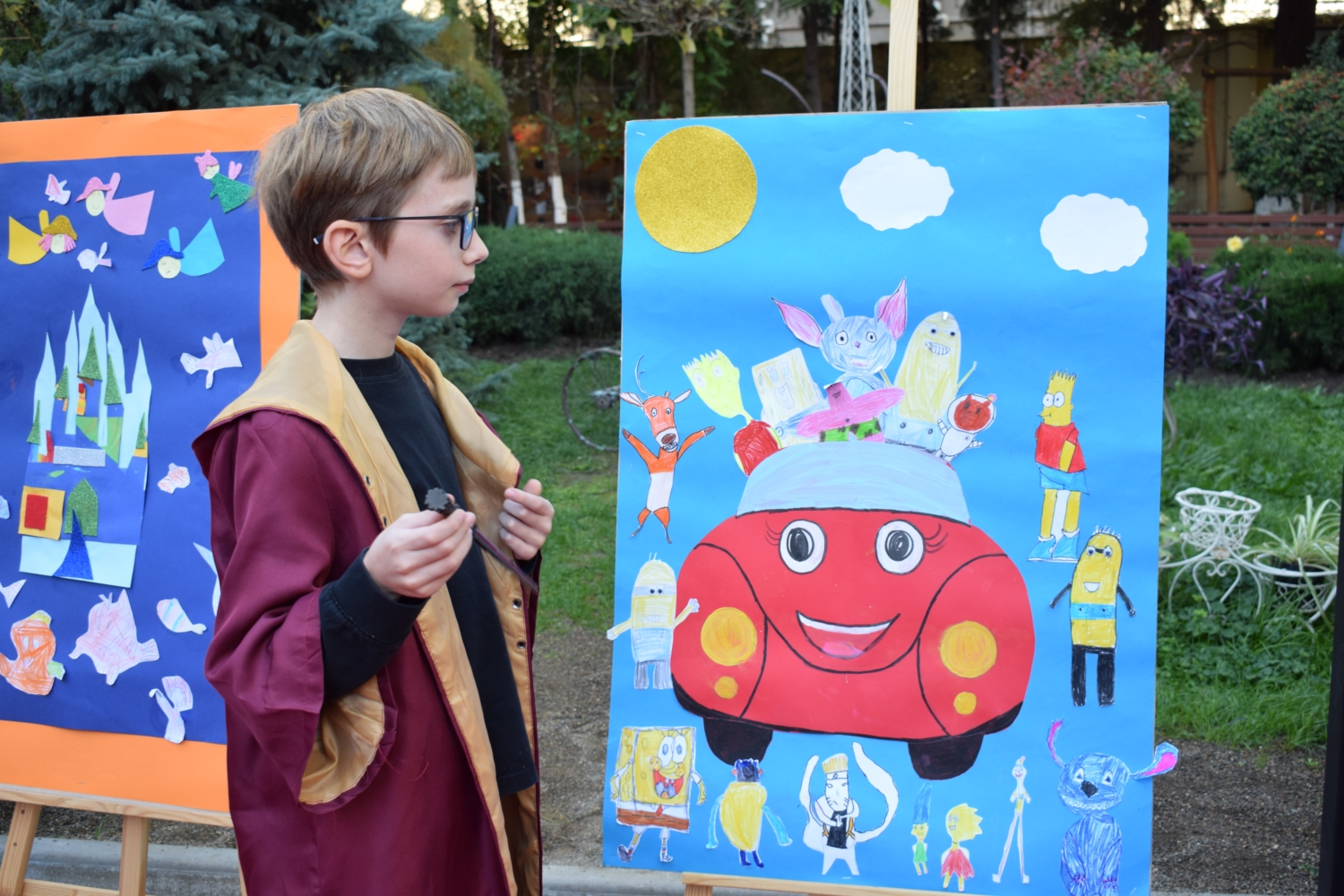 საყვარელი ანიმაციებისა და ზღაპრების გმირების კოსტუმებში გამოწყობილმა პატარებმა სკოლის ეზოში წითელ ხალიჩაზე პოდიუმი მოაწყვეს, ასევე გაიმართა ნახატების გამოფენაც.