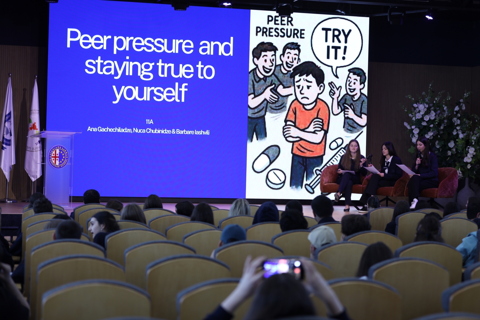 Hosted by students and featuring psychologist Ana Arveladze, the conference provided a safe and respectful space for open dialogue about identity, uncertainty, peer pressure, and the challenges of growing up.