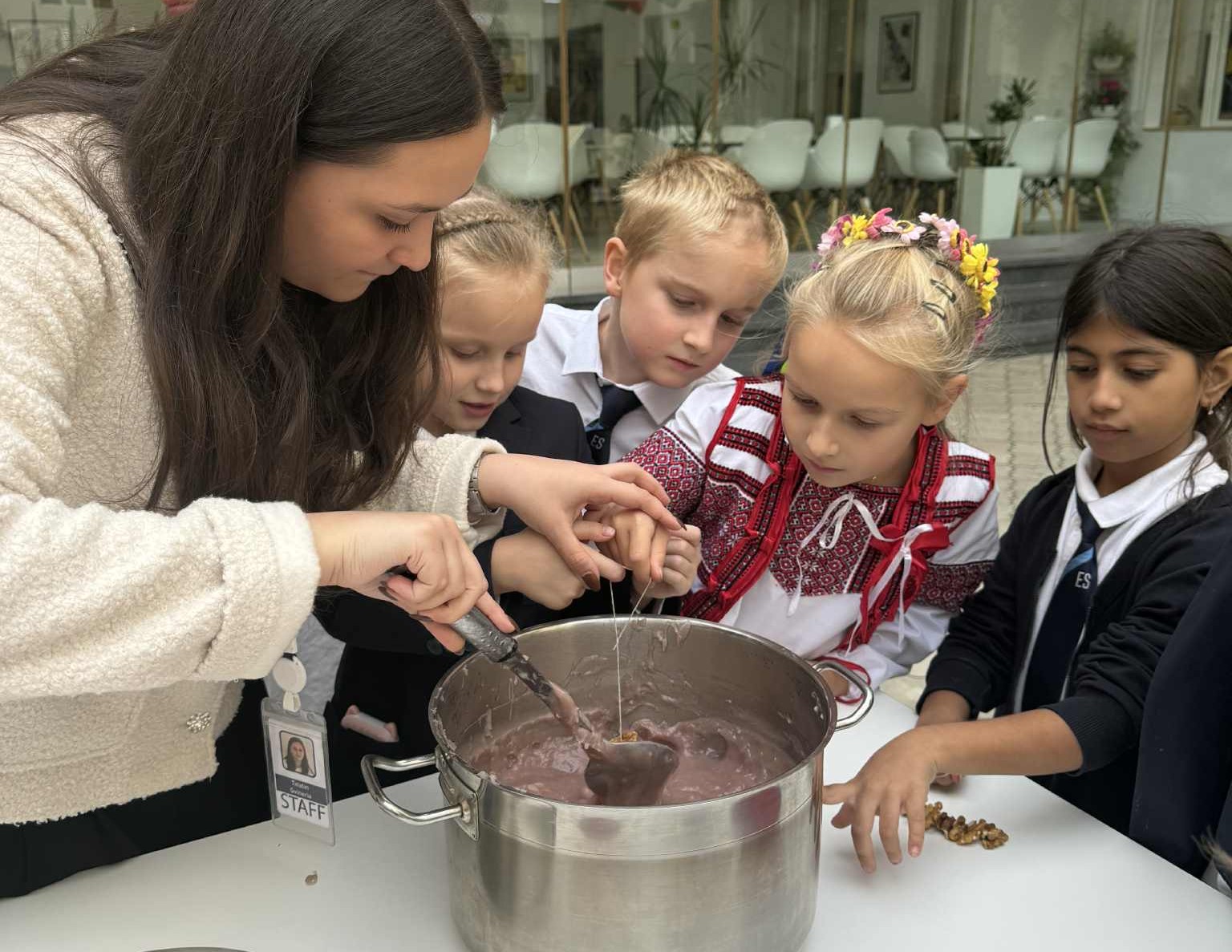 On the same day, volunteer parents joined their children to present aspects of their own cultures, further enriching the learning experience and strengthening the home-school connection. Students also made churchkhela, a traditional Georgian dessert, enjoying a hands-on activity that linked local traditions to global understanding.