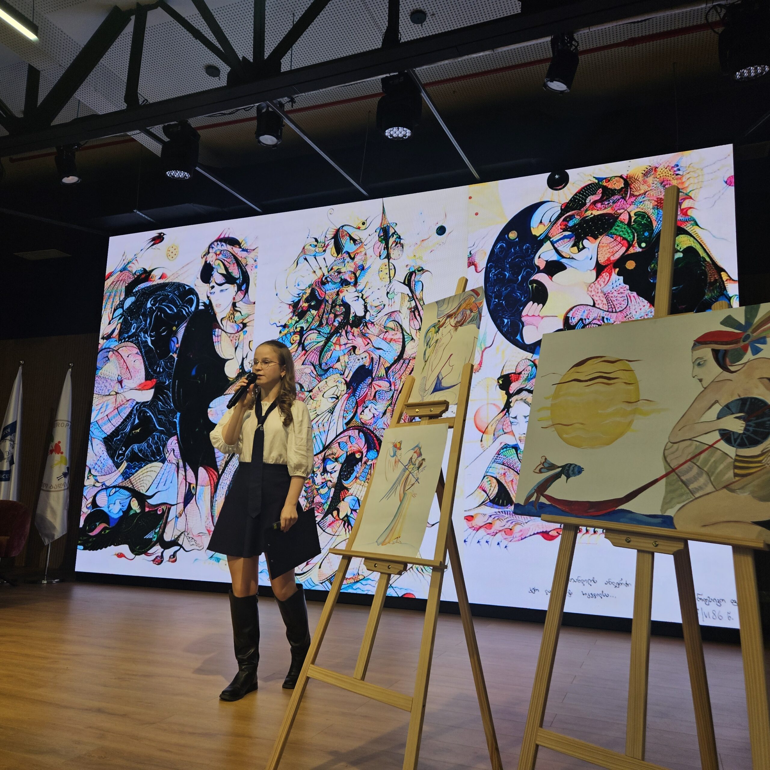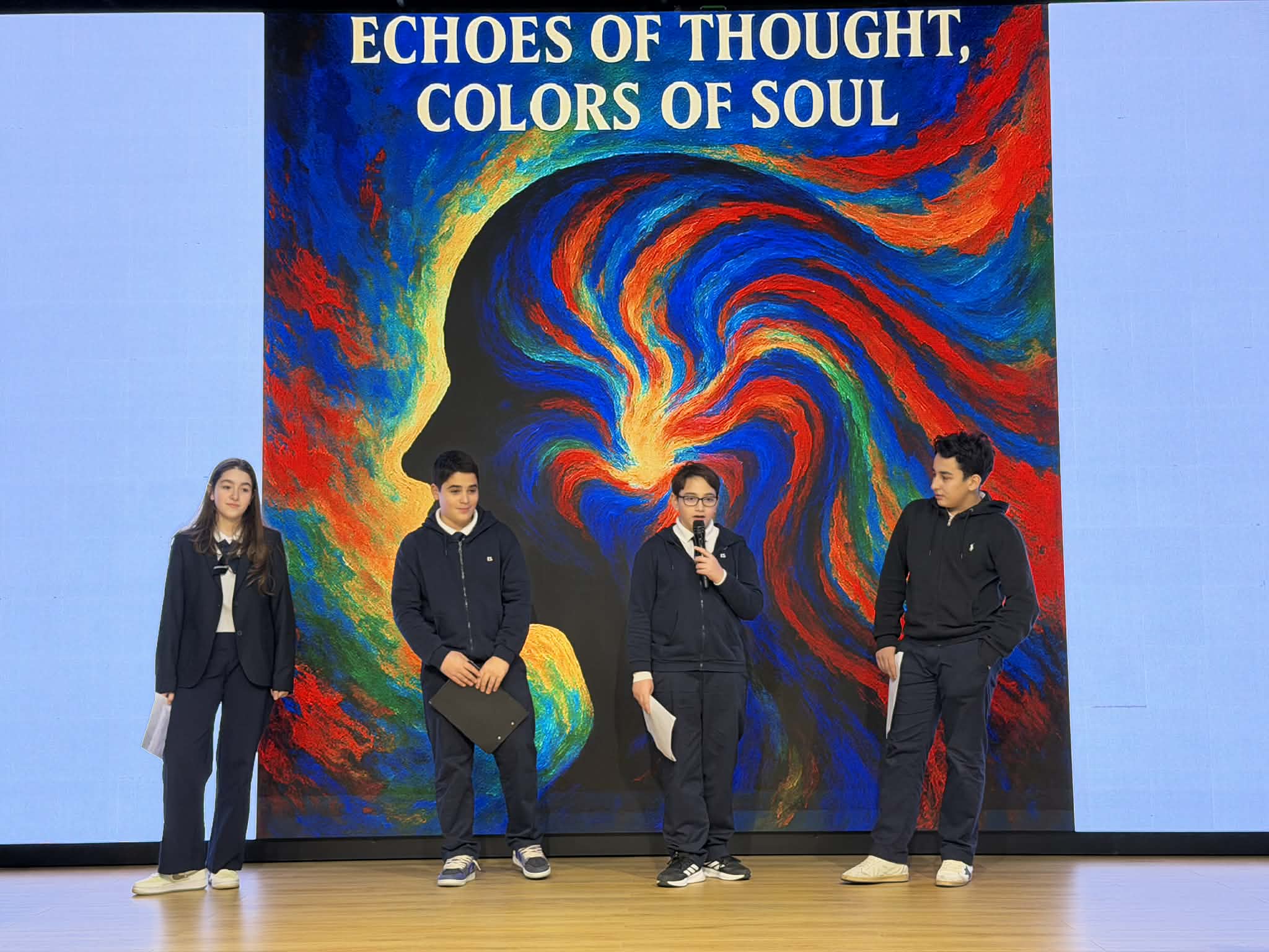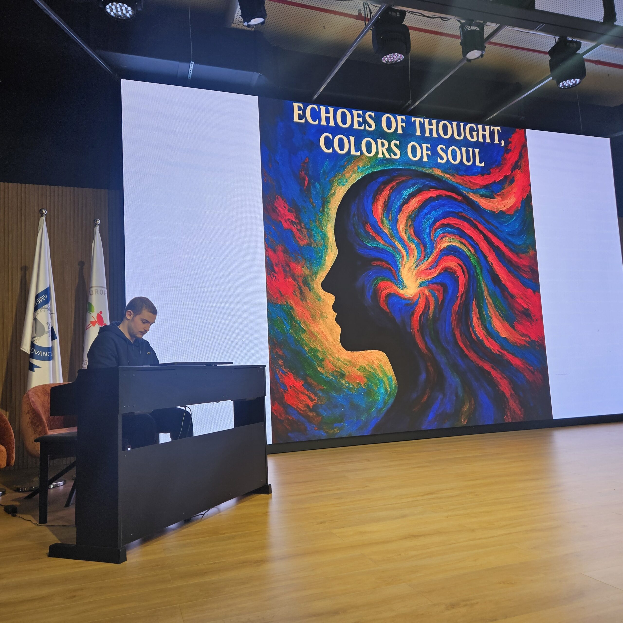On 28 November, students gathered for “Echoes of Thought, Colors of Soul,” a special event dedicated to Georgian poetess Manana Abramishvili. The evening opened with a graceful piano performance by Tornike Butskhrikidze (Grade 11), setting the tone for a celebration of poetry and art.