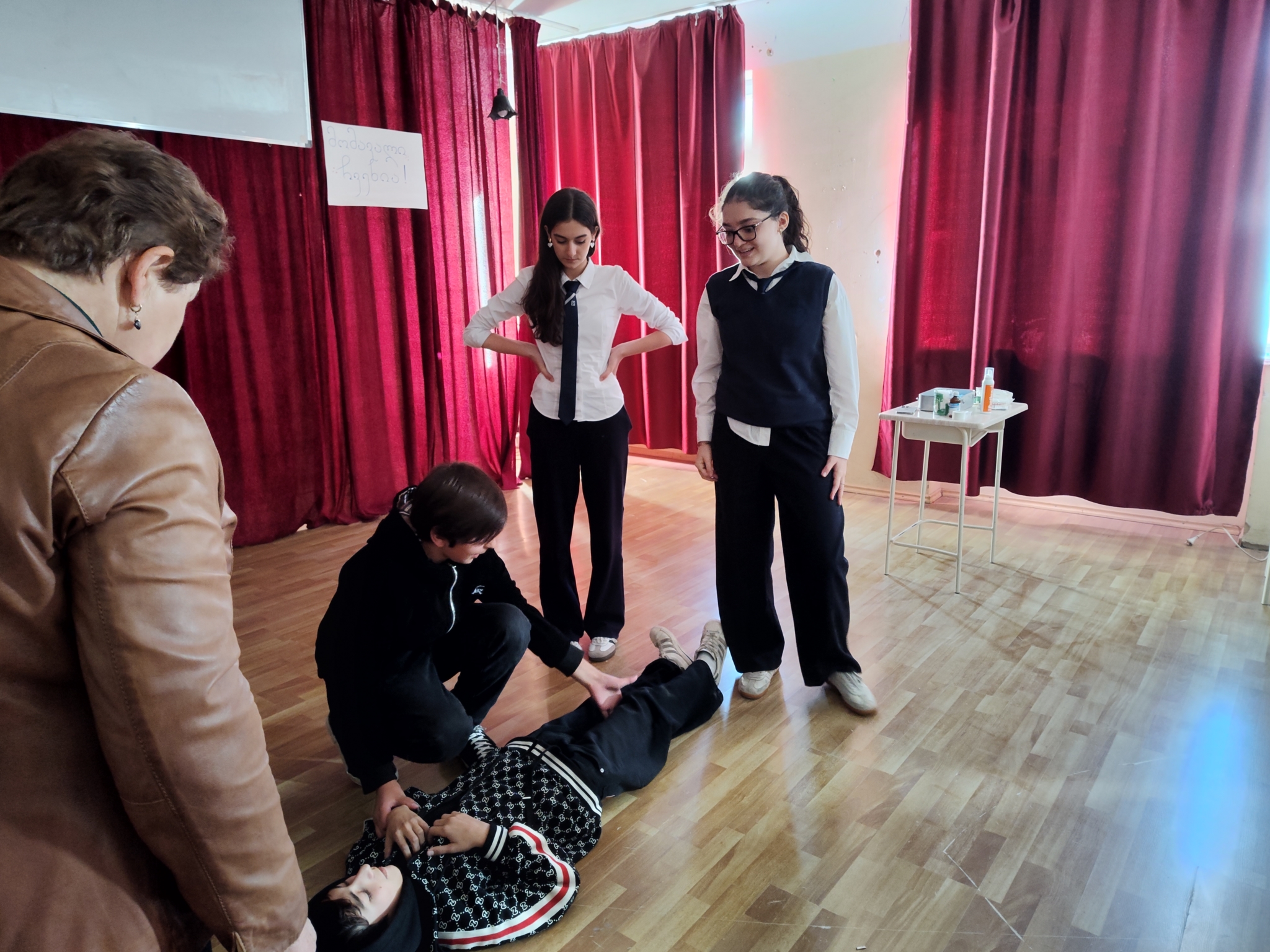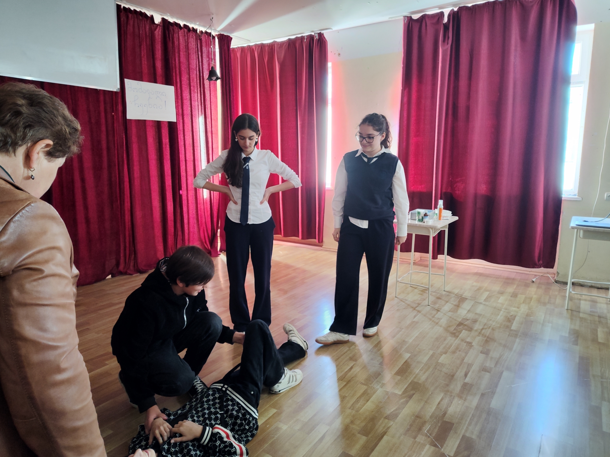 As part of our memorandum of collaboration, we visited Tirdznisi Public School on November 20. During the visit, our students Nini Partsvania and Ana Molodini delivered a first aid training session for the students of Tirdznisi Public School. Their goal was to teach basic steps to handle emergency situations using the skills and resources available to them. At the end of the session, our students donated a fully equipped first aid kit to the school.
