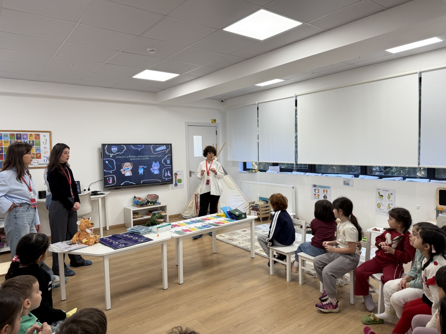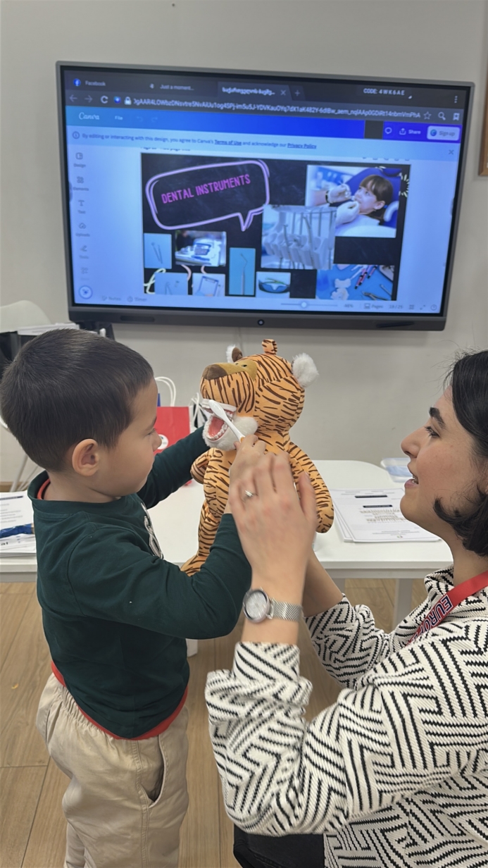 ევროპულ ბაღში გვესტუმრნენ ახალგაზრდა სტომატოლოგები, რომლებმაც ჩვენს პატარებს გაუზიარეს ცოდნა ჯანსაღი სტომატოლოგიური ჩვევების შესახებ.